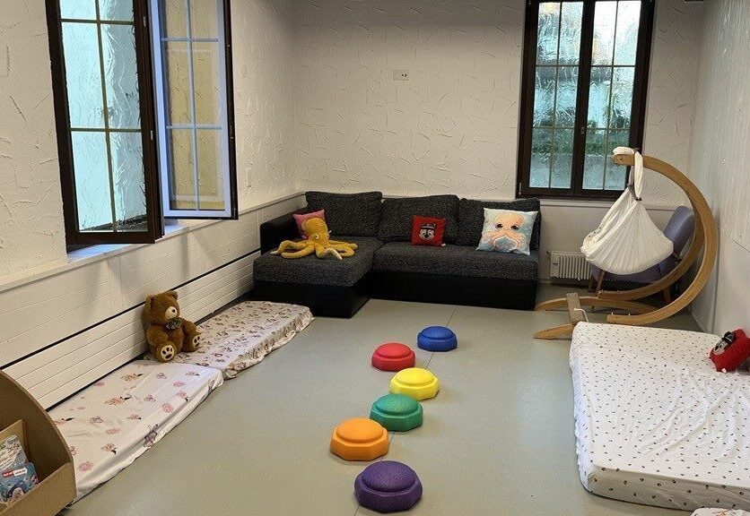 Die Kita befindet sich im ehemaligen Restaurant Beaulieu. Die Räumlichkeiten wurden komplett umgebaut und auf die Bedürfnisse der Kinder angepasst. Die grosszügigen und liebevoll eingerichteten Räume sowie der geschützte Aussenbereich laden ein zum Spielen und Entdecken. Neben viel Platz für ein fantasievolles und kreatives Freispiel gibt es genügend Raum für Rückzugsmöglichkeiten für jedes Alter.